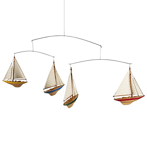 Authentic Models A-Cup Mobile with 4 Colorful Wood J-Yacht Miniatures