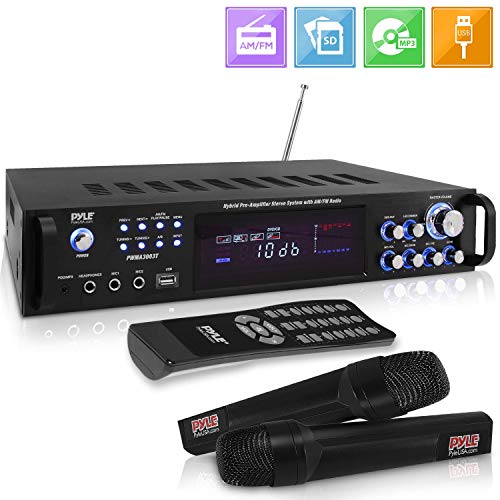 4 Channel Home Audio Power Amplifier - 3000 Watt Stereo Receiver w/ Speaker Selector, AM FM Radio, USB, Headphone, 2 Wireless Mics for Karaoke, Great for Home Entertainment System - Pyle PWMA3003T