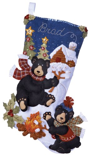 Bucilla 18-Inch Christmas Stocking Felt Appliqué Kit, 85467 Black Bear Bonfire