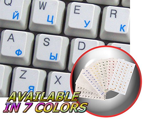 RUSSIAN CYRILLIC KEYBOARD STICKERS WITH BLUE LETTERING ON TRANSPARENT BACKGROUND