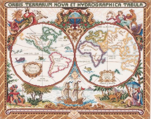 Janlynn Cross Stitch Kit, 15-Inch by 18-Inch, Olde World Map