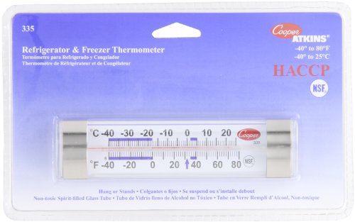Cooper-Atkins 335-01-1 Commercial Refrigerator Thermometer, Commercial Freezer Thermometer (Glass Tube Thermometer, Commercial Grade Thermometer)