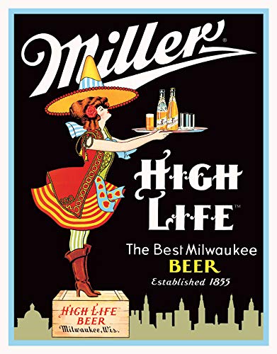 Desperate Enterprises Miller High Life Server Tin Sign, 12.5" W x 16" H