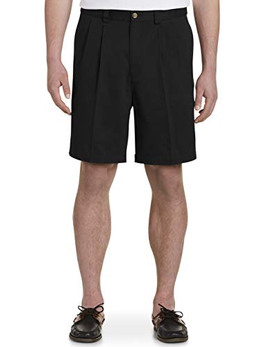 Harbor Bay by DXL Big and Tall Waist-Relaxer Pleated Twill Shorts, Black 60 Long