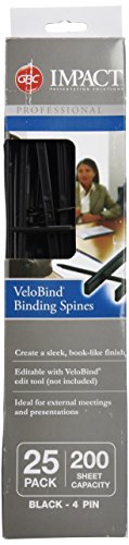 GBC VeloBind Easy-Editing Reclosable Binding Spines, 4 Pin Spines, Black, 200 Sheet Capacity, 25 Spines (9741630)