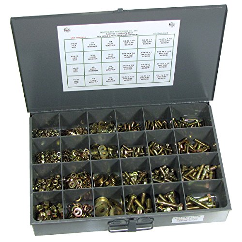 NEF Grade 8 Nut Bolt Washer Assortment, Hex Head Cap Screws, Flat and Lock Washers, Hex Nuts, Coarse Thread, Set of 1025 Fasteners