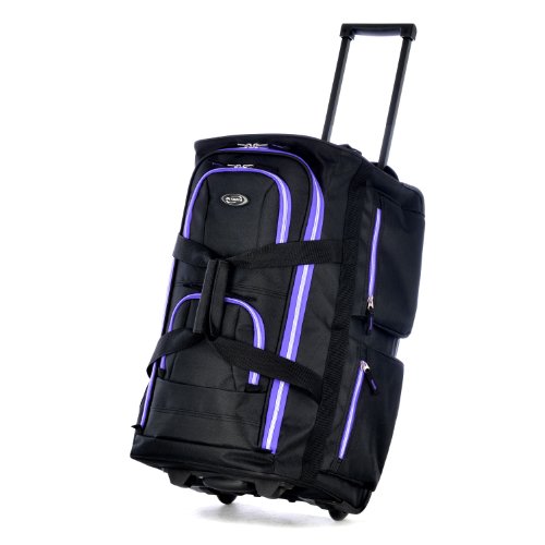 Olympia 8 Pocket Rolling Duffel Bag, Black/Purple