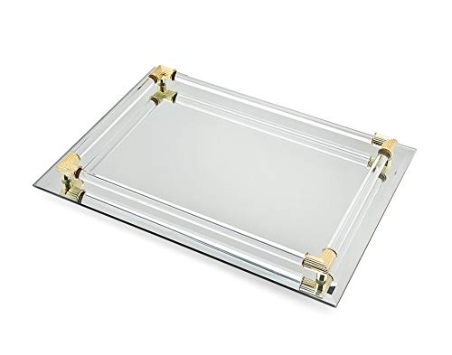 Mirror Tray Vanity Tray Serving Tray with Crystal Border - 9" x 14"