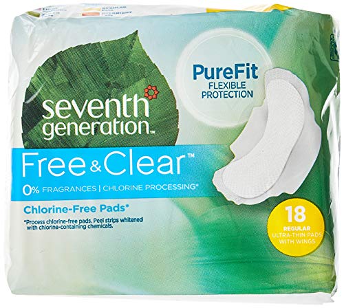 Seventh Generation Ultrathin Pads, Regular with wings, Free & Clear, 18 count