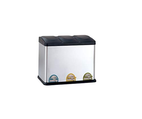Organize It All 3 Compartment Step-On 45 Liter Recycling Trash Can, Stainless Steel