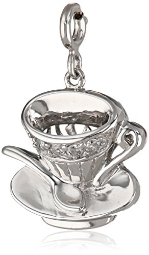 Sterling Silver Diamond Tea Cup Charm (1/10 Cttw, I Color, I3 Clarity)