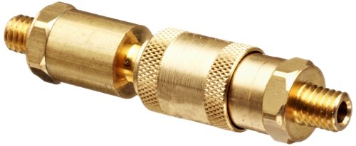 Brass Double Shut-Off Quick Connector 10/32" Thread, .63" OD, 3.25"L Coupler, 1.97"L Plug with Buna-N Seal