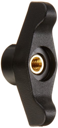 DimcoGray Black Thermoplastic Wingnut Knob Female, Thru Hole Brass Insert: 1/4-20" Thread x 5/8" Depth, 2-1/2" Diameter x 1-3/64" Height x 7/8" Hub Dia x 3/8" Hub Length (Pack of 10)