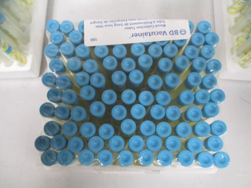BD VACUTAINER GLASS BLOOD COLLECTION TUBES (CITRATE) Glass Tube, Hemogard Closure, 13 x 75mm, 4.5mL, Lt. Blue, Paper Label, Citrate Solution 0.5mL, 3.2% Sodium Citrate 12.35mg, Citric Acid 2.21mg, 100/bx