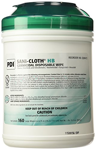 PDI Sani-cloth HB Germicidal Disposable Wipes 6" X 6-3/4" (1 Pack of 160) - 13.3 oz.