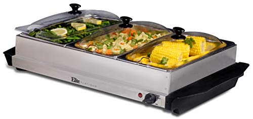Elite Platinum EWM-6171 Triple Server Food Warmer, Adjustable Temp, Buffet Trays and Slotted Lids, 3 x 2.5 Quart, Stainless Steel