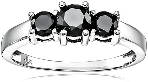14k White Gold Black Diamond 3-Stone Ring (1 cttw), Size 6
