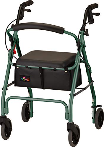 NOVA GetGo Classic Rollator Walker (Standard Size), Rolling Walker for Height 5’4” - 6’1”, Seat Height is 22.25”, Color Green