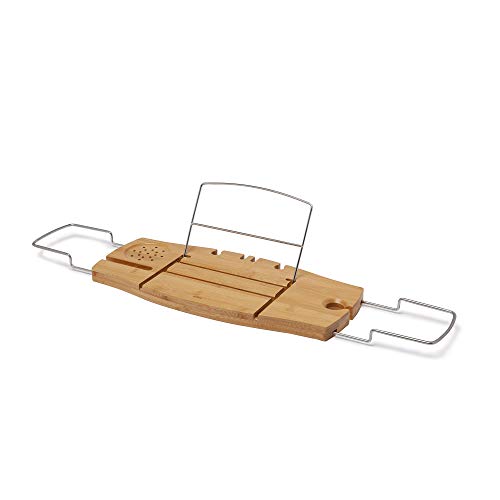 Umbra Aquala, Bamboo and Chrome Extendable Bathtub Tray Caddy, Natural