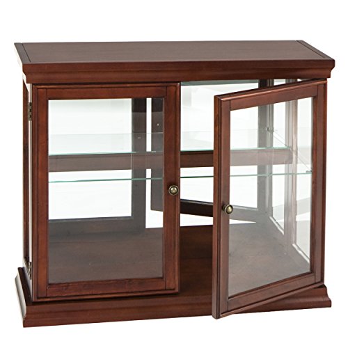 Double Door Curio w/ Mirror Back Wall - 2 Fixed Shelves - Chic Style Mahogany Finish
