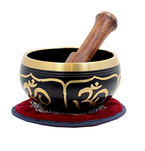 DharmaObjects Relaxing Yoga Meditation Om Peace Singing Bowl/Silk Cushion/Rosewood Mallet Set