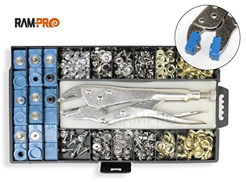 RAM-PRO Snap, Grommet, Rivet Tool Kit for Tarps Complete with Over 400 Pieces - Boat Covers, Canopies, Canvas Repair, Grommet Replacement