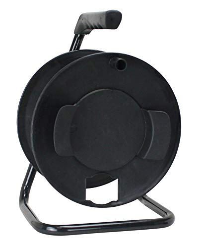 Prime CR003000 Portable Cord Reel with Metal Stand, Black, Holds 100-Ft of Cord