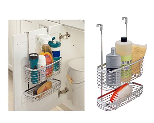 iDesign Axis Over the Cabinet 2-Tier Kitchen Storage Basket Organizer for Aluminum Foil, Sandwich Bags, Cleaning Supplies, Garbage Bags, Bath Supplies, Chrome