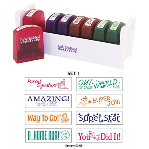 ECR4Kids Motivation Teacher Stamps - Mess-Free Self-Inking School Grading Stamp Set with Storage Tray (8-Piece Kit)