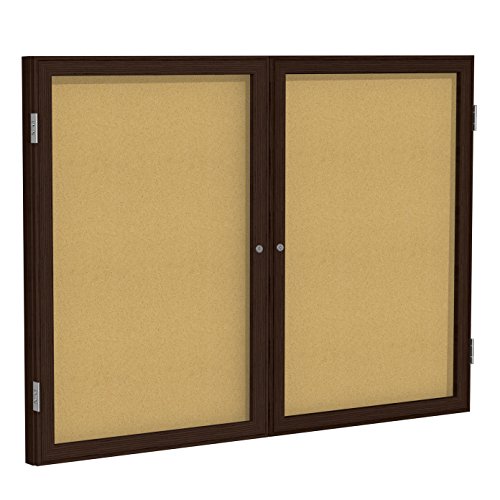 Ghent 36"x48" 2-Door indoor Enclosed Bulletin Board , Shatter Resistant, with Lock, Wood Frame Walnut Finish Natural Cork (PN23648K) Made in the USA