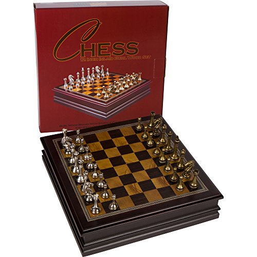 Grace Chess Inlaid Wood Board Game Set with Metal Pieces, Medium 12 x 12 Inch