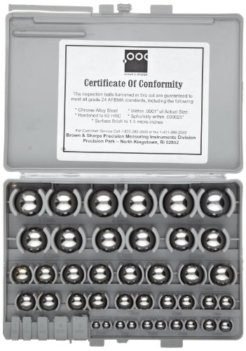 Brown & Sharpe 599-766M Metric Precision Gauge Ball Set, Chrome Hardened Steel, 1-50mm Range, 50 Piece Set with Case, AFBMA-Certified