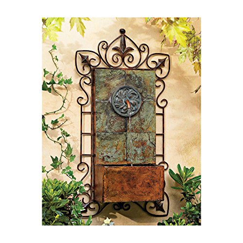 John Timberland Ibizi Faux Slate &Amp; Iron Medallion 33" H Wall Led Fountain