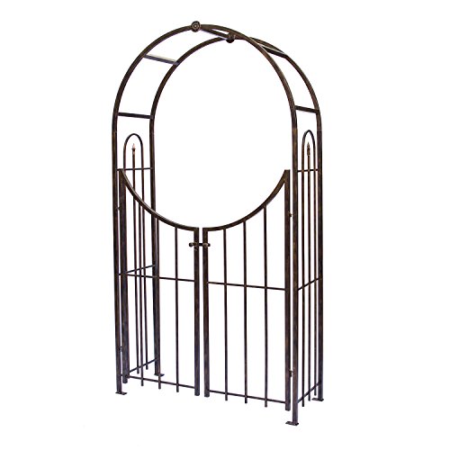 Panacea Products Arched Top Garden Arbor with Gate, Brushed Bronze