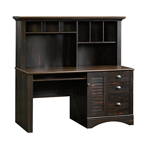 Sauder 401634 Harbor View Computer Desk with Hutch, L: 62.21" x W: 23.50" x H: 57.36", Antiqued Paint finish