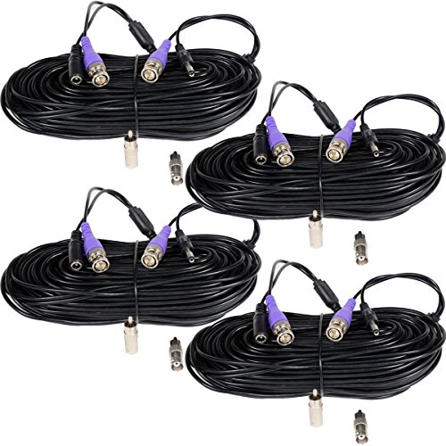 VideoSecu 4 Pack 100ft Video Power HD Security Camera Cables Pre-made All-in-One Extension Wire Cord with BNC RCA Connectors for 960H HD-CVI HD-TVI AHD CCTV Surveillance Camera DVR System CBHD1004 A1G