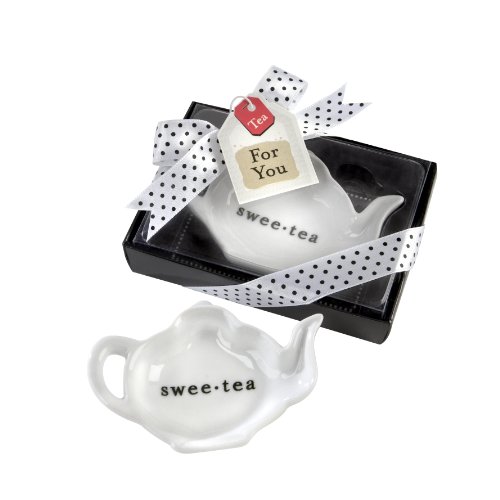 Swee-Tea Ceramic Tea-Bag Caddy in Black & White Serving-Tray Gift Box