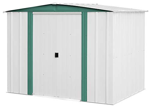Arrow 8' x 6' Hamlet Storage Shed, Yard and Outdoor Storage for Tools, Lawn Equipment, Pool Toys Eggshell and Green