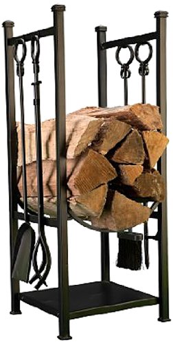 Panacea 15234 Log Bin and Fireplace Tool Set with 4 Tools, Black