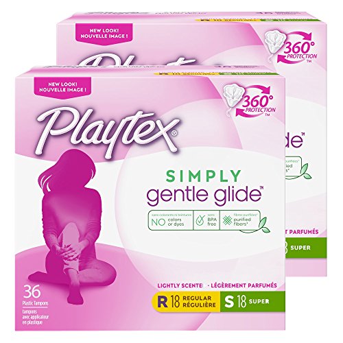 Playtex Simply Gentle Glide Multipack Fresh Scent Tampons with Regular and Super Absorbencies, 36 Count (Pack of 2) (Packaging May Vary)