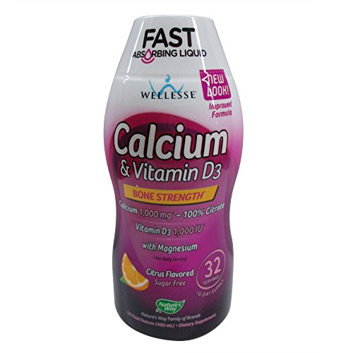 Wellesse Calcium & Vitamin D3, 1000mg, Natural Citrus Flavor, 16-Ounce Bottles (Pack of 2)