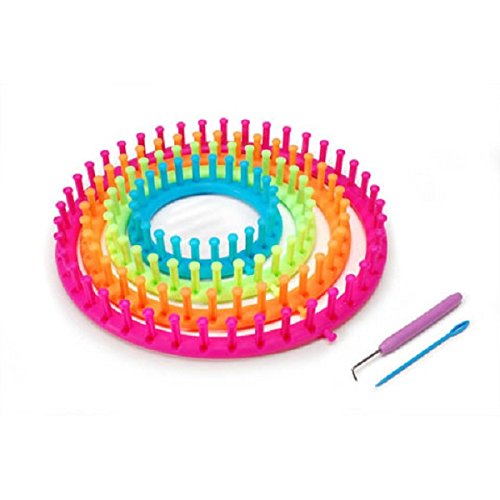 Darice Carryi Round Knitting, Set of 4 with 11, 9, 7-inch and 5-1/2 inch Sizes – Includes 1 Yarn Needle, 1 Loom Pick and a Clear Plastic Carrying Case (1171-58), 4 Piece, Multi Colored