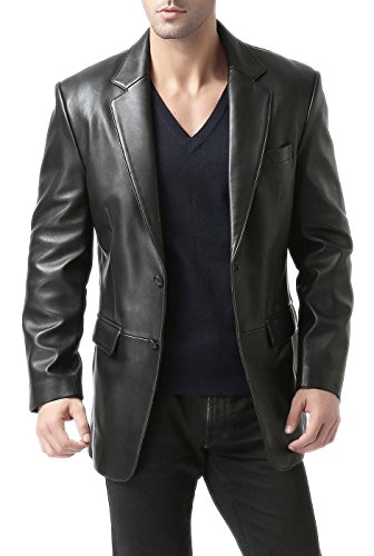 BGSD Men's Richard Classic 2-Button Lambskin Leather Blazer Black Big and Tall 4XLT