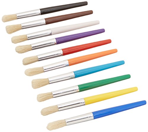 Charles Leonard Creative Arts Round Tip Paint Brushes, Short Stubby Round Handle with Hog Bristle, 7.5 Inch, Assorted Colors, 10-Pack (73210)