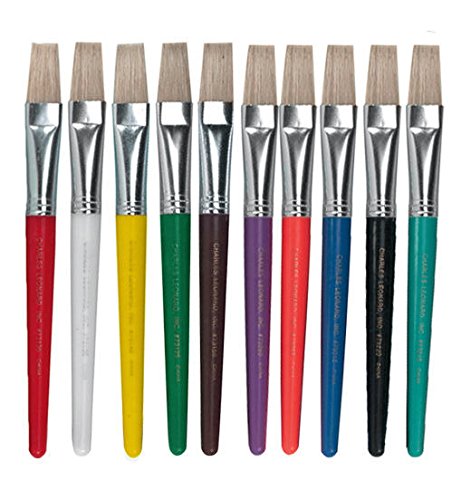 Charles Leonard Creative Arts Flat Tip Paint Brushes, Short Stubby Plastic Handle with Hog Bristle, 7.5 Inch, Assorted Colors, 10-Pack (73290)