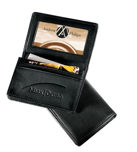Millennium Leather Deluxe Gusseted Business Card Case,Black Genuine Split Leather