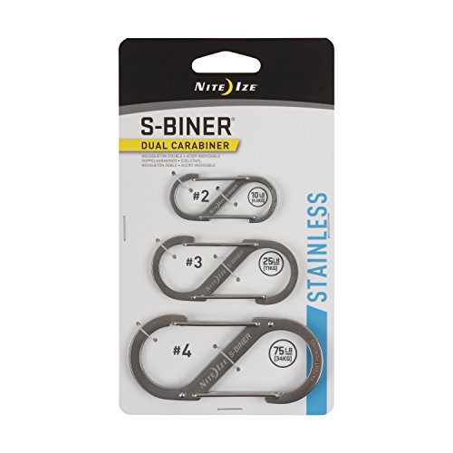 Nite Ize S-Biner Dual Carabiners, Stainless-Steel, Assorted 3-Pack, Sizes 2, 3, 5