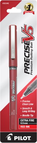 Pilot Precise V5 Stick Rolling Ball Pen Extra Fine Point Single Pen Red Ink (35345) Patented Precision Point Technology, Smooth Skip-Free Writing, Visible Ink Supply