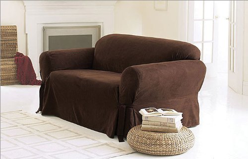 Chezmoi Collection Soft Micro Suede Solid Chocolate Brown Couch/sofa Cover Slipcover with Elastic Band Under Seat Cushion