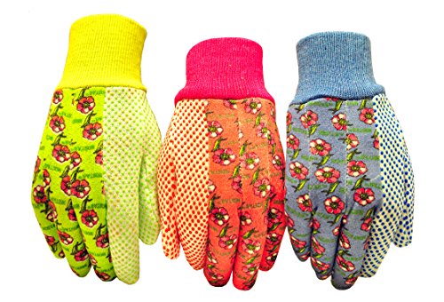 G & F 1852-3 Women Soft Jersey Garden Gloves, Women Work Gloves, 3-Pairs Green/Pink/Blue per Pack